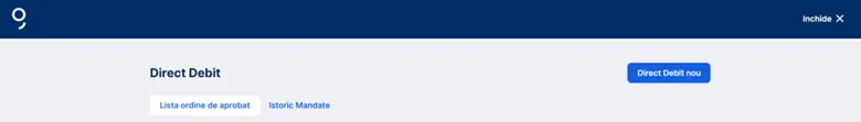 5. Apasă pe „+ Direct debit nou” în partea dreaptă pentru a crea un mandat nou.