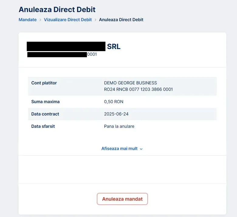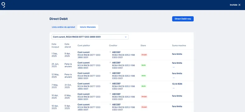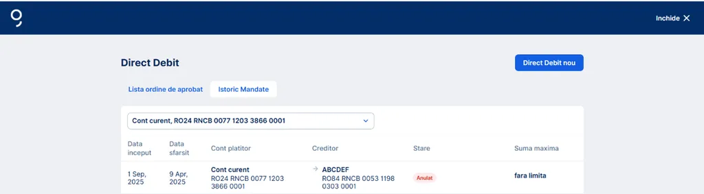 Vizualizează și sterge/anulează mandatele de Direct Debit