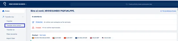 1. Din ecranul principal George Business, selectează "Transfer nou" în partea stângă a meniului de navigare.