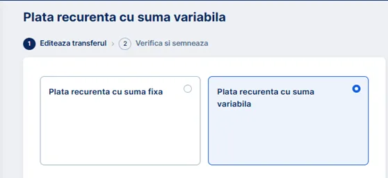 1. Pentru a crea o plată recurentă cu sumă variabilă, fă clic pe butonul aferent acestei opțiuni (opțiunea de Plata recurenta cu suma fixa).