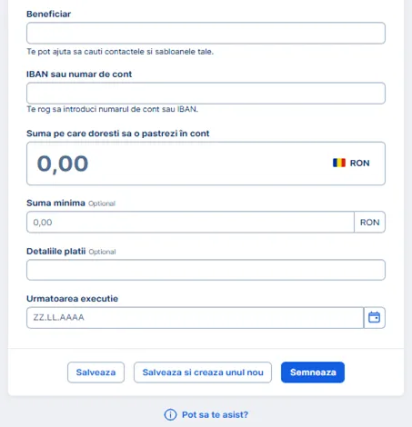 Pentru a crea o plată recurentă cu sumă fixă, fă clic pe butonul aferent acestei opțiuni.